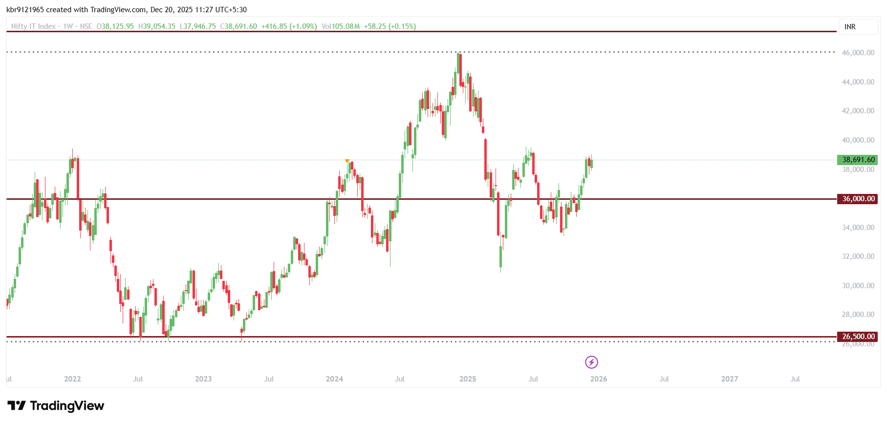 CNXIT Index can make good comeback for year 2026 if it sustains above 36000 Gann Price Level. Major Gann Price Cycle Target for this Index is 47500. Above this Gann Price Cycle Level of 47500 it may outperform for the coming years. Gann Traders can look at this Index and its constituents stocks to generate alpha in their portfolio. Initial targets for this Index may be seen at 39000 levels.