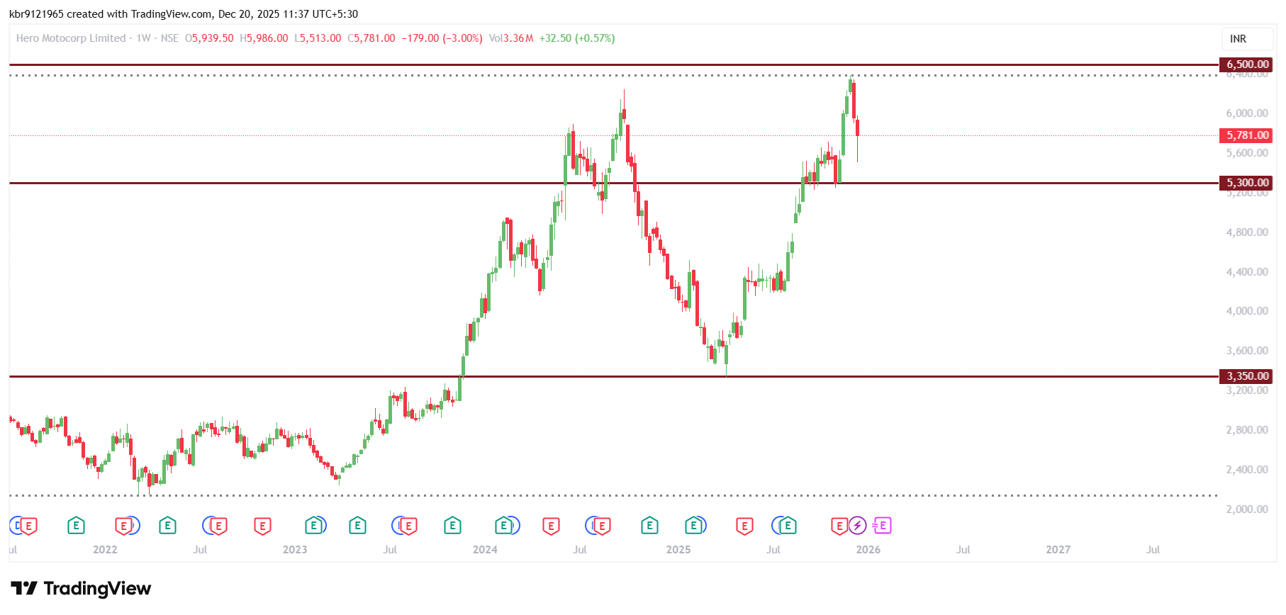 HEROMOTOCORP stock has had a phenomenal run from the Gann Price Cycle level of 3350 to reach a important Gann Price Cycle Level of 6500. It has made two attempts in the year 2025 to cross this level. Major supports are at 5300 Gann Price Cycle Level where it has made the recent swing low. This stock may outperform in 2026 once it sustains above the Gann level of 6500. Gann traders can keep watch on this stock once it crosses the level of 6500. This stock has potential to hit Gann Level of 7900 once it starts outperforming above 6500.