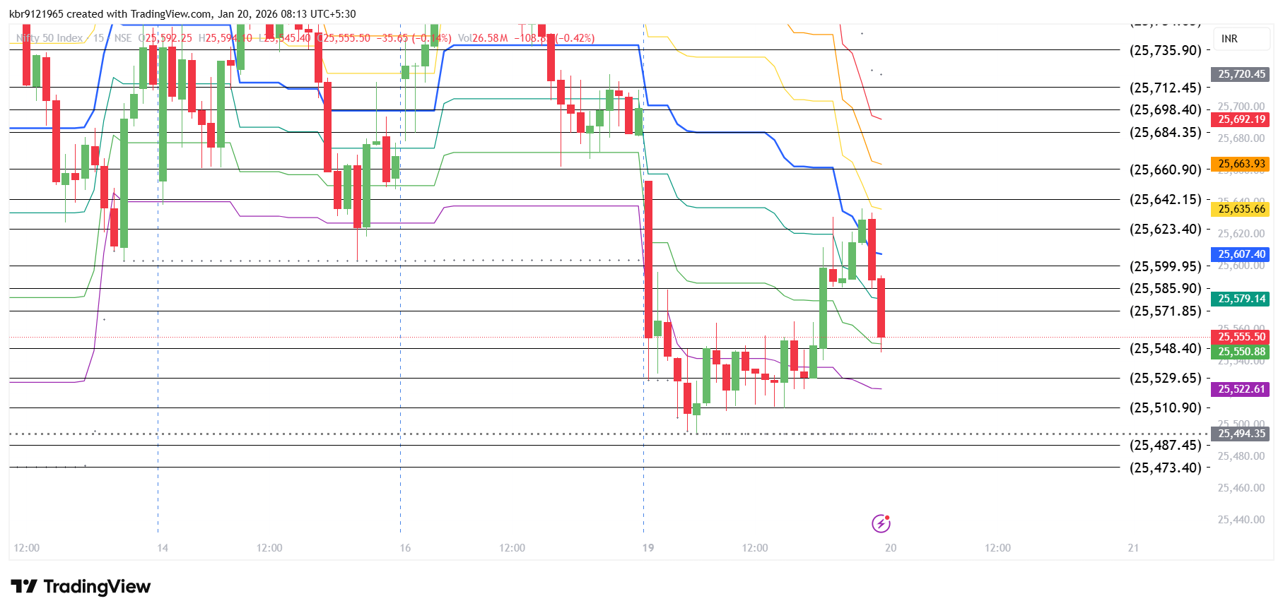 Lets analyze Nifty 50 Index for intraday for expiry trading on 20 Jan 2026. Normal range for today is 25487 to 25586. Trend decider level for today is 25529. Expansion on either side can be seen above 25642 and below 25459. Beware of fake outs when trading with breakouts. Intraday should try buying on pull backs and should sell on rise. This will help them to get good risk reward ratios on their trades.