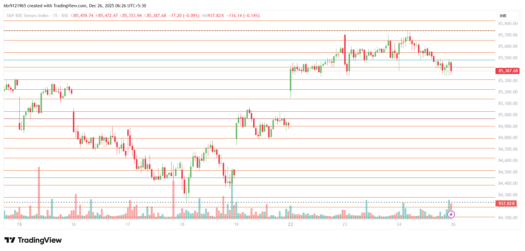 Intermediate Gann levels to watch in current week are (85141/85312/85548) and (84797/84625/84389). Important date to watch is 27 December 2026 (Effect on 26 December 2025).